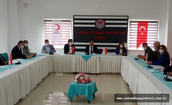 Edirne Vali Yardımcısı Ali Uysal, toplantıda yaptığı konuşmada, “Bu sonuçta milli bir mesele. Kızılayımızın kana ihtiyacı var. Kızılayımızın ihtiyacı olduğu kanı toplamak için başta kamu kurum ve kuruluşları ve bütün Edirne halkı olarak bir kampanya başlatıyoruz. Sağlığı elverişli olan herkesle beraber kan bağışı kampanyasına katılıp kan vereceğiz. Bizim buradaki yöntemimiz bütün kamu kurum ve kuruluşların özellikle Milli Eğitim başta ve sağlık diğer kurumlar sağlığı elverişli olan herkesi kan vermeye davet edeceğiz. Kan veren bütün kamu görevlileri bunu sosyal medyadan paylaşacaklar. Halkımızı teşvik etmek için. Siyasi partilerden de yardım isteyeceğiz. Mahalle ve köy muhtarları dahil Edirne genelinde bir kampanya başlatıyoruz. Esnaf odamızdan beklentimiz yüksek. 16 bin üyesi var. Burada ETSO da devreye girecek. Maksimum seviyede kan toplamayı hedefliyoruz. 16, 17 ve 18 Ekim’de Saraçlar Caddesi’nde kan alımı yapılacaktır. Biz de orada olacağız.” ifadelerini kullandı.