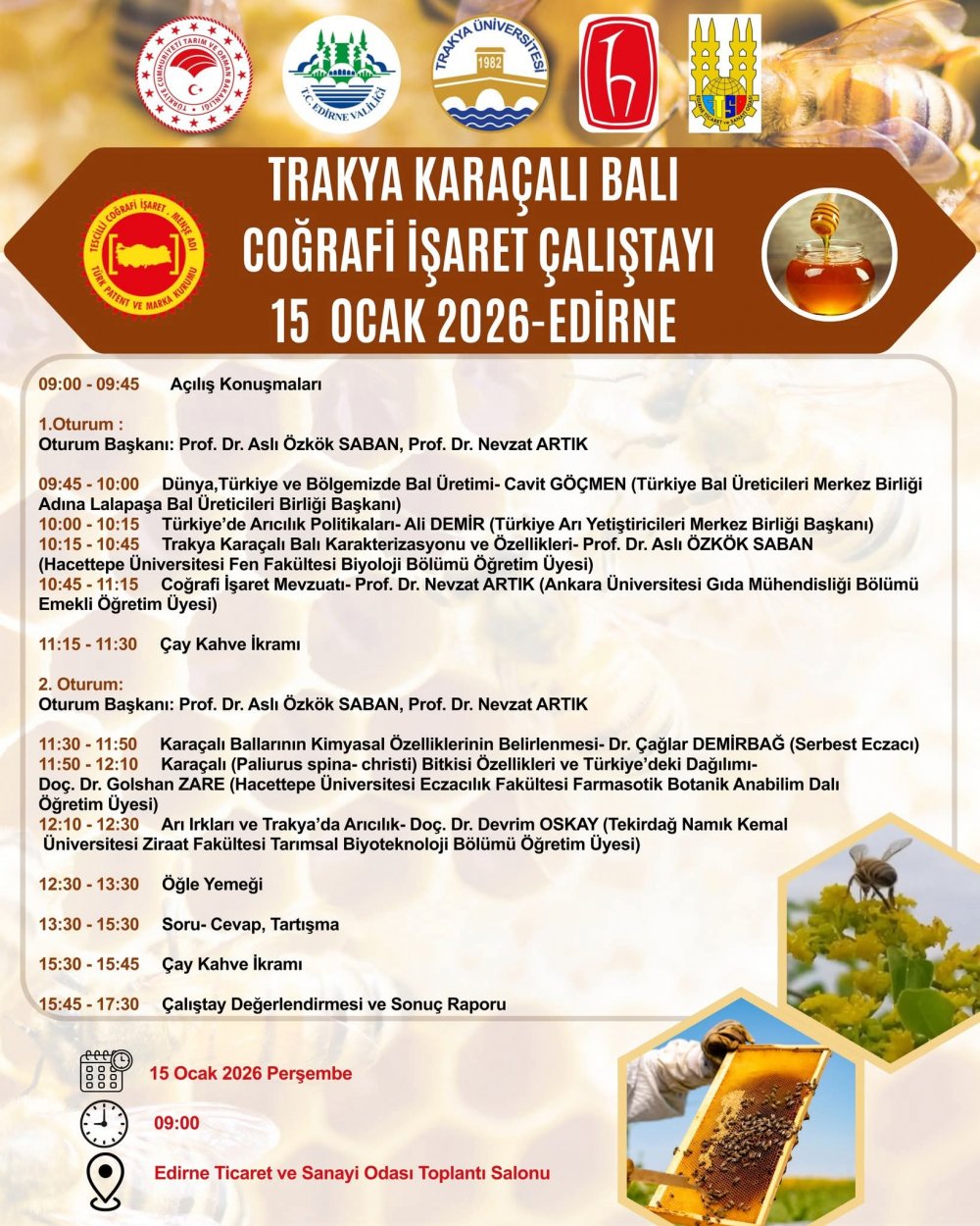 15 Ocak 2026 Perşembe günü, Edirne Ticaret ve Sanayi Odası’nda gerçekleştirilecek çalıştayın, Trakya arıcılığına ve bölge tarımına önemli katkılar sağlaması bekleniyor.