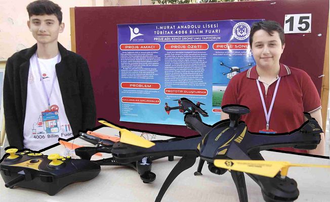 1. Murat Anadolu Lisesi’nde öğrenim gören 40 öğrencinin biyoloji, fizik, kimya başta olmak üzere birçok alanda yapmış olduğu 20 proje, Tübitak 4006 Bilim Fuarı’nda sergilendi. Fuarda en çok ilgiyi gören projelerden biri ise ‘Kendi Drone’umu Yapıyorum’ isimli proje oldu. Berkay Kaplan ve Kadircan Dinçeller tarafından hazırlanan projede; drone yapımının sanıldığı gibi zor bir çalışma olmadığı vurgulandı.