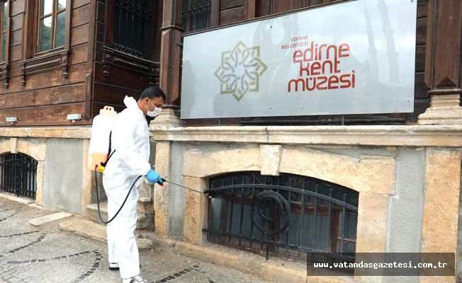 COVİD-19 tedbirleri kapsamında kapatılan Edirne Belediyesi Kent Müzesi; normalleşme sürecine girdiğimiz 1 Haziran tarihinde kapılarını ziyaretçilere açtı. Kent Müzesi, açılış öncesinde Belediye ekipleri tarafından dezenfekte edildi.