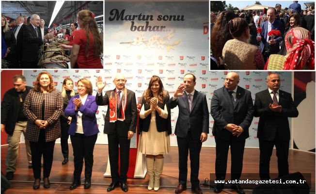 Genel Başkan Kılıçdaroğlu, 8 Mart tarihinin geçmişinden de bahsederek, “8 Mart 1857’de ABD’nin New York Eyaleti’nde binlerce kadın tekstil atölyelerinde çalışıyor. Günde 16 saat çalışıyorlar. İnsani koşullardan tamamen uzak. Aldıkları aylıklar, 16 saat çalışmalarına karşın yetmiyor. Kadınlar diyorlar ki, ‘Bu şartlarda neden çalışalım? Biz üretiyoruz, biz çalışıyoruz, biz alın teri döküyoruz, başkaları kazanıyor. Çalışmaksa tamam, üretmekse tamam ama hakça paylaşalım. Herkes bir şekilde bu kazancın ortağı olsun.’ Sonra grev yapıyorlar. Binlerce kadın hak grevine çıkıyor. ‘Siz misiniz grev yapan?’ Fabrikalara kilitliyorlar ve yangın çıkıyor. 120 kadın hayatını kaybediyor. Bugün burada Kadınlar Gününü kutluyorsak, binlerce kadının verdiği ve 120 kadının hayatını kaybettiği bir günün anısına burada toplanıyoruz. O kadınlar bütün dünyaya örnek oldular. Biz bugün Kadınlar Gününü çiçeklerle kutluyoruz ama onun arkasında yatan derin bir üzüntü ve güçlü bir hak mücadelesi var. O nedenle kadın hareketi, sıradan bir hareket değildir. Kadının bilinci sıradan bir bilinç değildir. Kadının üretimi, sıradan bir üretim değildir. Alın teri ve göz nuru vardır. Hak aramak için hayatlarını feda etmişlerdir. Eğer bir insan hak arayabiliyorsa, insan kimliğine kavuşmuş demektir. Hakkını aramayan kişinin, hakkı verilmez. Hak aramak o nedenle çok değerlidir. Allah’ın isimlerinden birisi de, ‘Hak’tır. Hak aramak, hakkın peşinde koşmak, emeğini birilerine peşkeş çekmemek hepimizin ortak görevidir. Dünya kadın hareketinin arkasında böyle bir acı, böyle bir gözyaşı ve böyle bir onur kimliği vardır. Bu onur kimliği, bugün bütün dünya kadınlarını 8 Mart’ta buluşturan bir kimliktir.” ifadelerini kullandı.