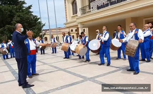 Tarihi Kırkpınar Davul-Zurna ekibi Edirne Valisi Ekrem Canalp’i 660. Tarihi Kırkpınar Yağlı Güreşlerine davet etti.