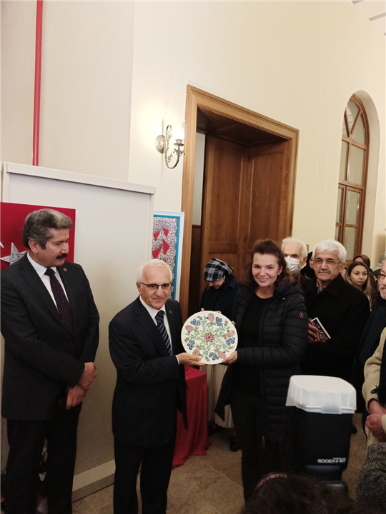 Trakya Üniversitesi Şehit Ressam Hasan Rıza Güzel Sanatlar Meslek Yüksekokulu Öğr. Gör. Nergis Çanak, Kırmızı Çini Sergisi hakkında bilgiler vererek “Trakya Üniversitesi Şehit Ressam Hasan Rıza Güzel Sanatlar Meslek Yüksekokulu El Sanatları Programı ve Fatih Sultan Mehmet Vakıf Üniversitesi Güzel Sanatlar Fakültesi Geleneksel Türk Sanatları Çini Ana Sanat Dalı iş birliğiyle daha önce Sultan II. Bayezid Külliyesi Sağlık Müzesi Sergi Salonu’nda gerçekleştirdiğimiz sergimizin ardından burada da aynı ilgi ile karşılaşmak çok güzel. Emeği geçen tüm sanatkârlara ve sanatseverlere teşekkür ediyorum.” ifadelerini kullandı.