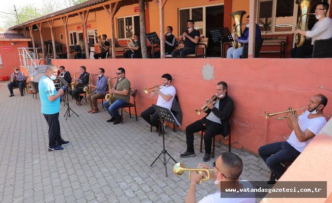Edirne Belediye Başkanı Recep Gürkan’da program için prova yapan Edirne Belediye Bandosu ekiplerini ziyaret etti. Bando ekipleriyle sohbet eden Başkan Gürkan, “Öncelikle sağlığınız. Kendi sağlığınız. Buna dikkat ederek, sosyal mesafeyi koruyarak, 23 Nisan Akşamı Saat:19.20’de konsere başlayacağız. Neden 19.20 çünkü 23 Nisan 1920 tarihinde açıldı, TBMM. Turizm otobüs alacak sizleri. Hijyen kurallarına dikkat ederek, Saat:20.30’a kadar, kentte dolaşacağız. 21.00’e doğru belediyeye geleceğiz. Orada anons sistemini kuracağız. Saat:21.00’de balkonlarına bütün Edirneliler ile birlikte İstiklal Marşımızı söyleyeceğiz. Sizde görüyorsunuz, bazı belediyeler zaman zaman bandoyu çıkarıyor. Ben bunu yapmadım. Çünkü çoğu nefesli sazlar, yayılma ihtimali daha yüksek. Ama otobüs yüksek ve hareket halinde olacağı için sizi de riske sokmamış olacağız” dedi.