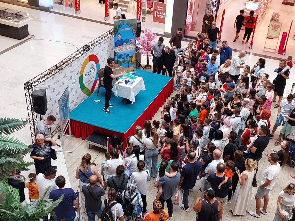 Kentteki Avm de düzenlenen etkinlikte minik okurlarla buluşan Filozof, yeni kitabı“Lemi Abi ve Zuzi Çocuk Kulübü: Yeni Dünya”yu imzaladı ve kitabın hikayesinden kesitler paylaştı. Kitapta Lemi Abi, uzaylı dostu Zuzi ve çılgın dansçı kedi Felix ile birlikte gizemli bir bilmecenin peşinden milyonlarca ışık yılı uzaklıktaki Taia gezegenine yolculuk ediyor; dinozorlarla insanlar arasındaki düşmanlığı sona erdirmeye çalışıyor.