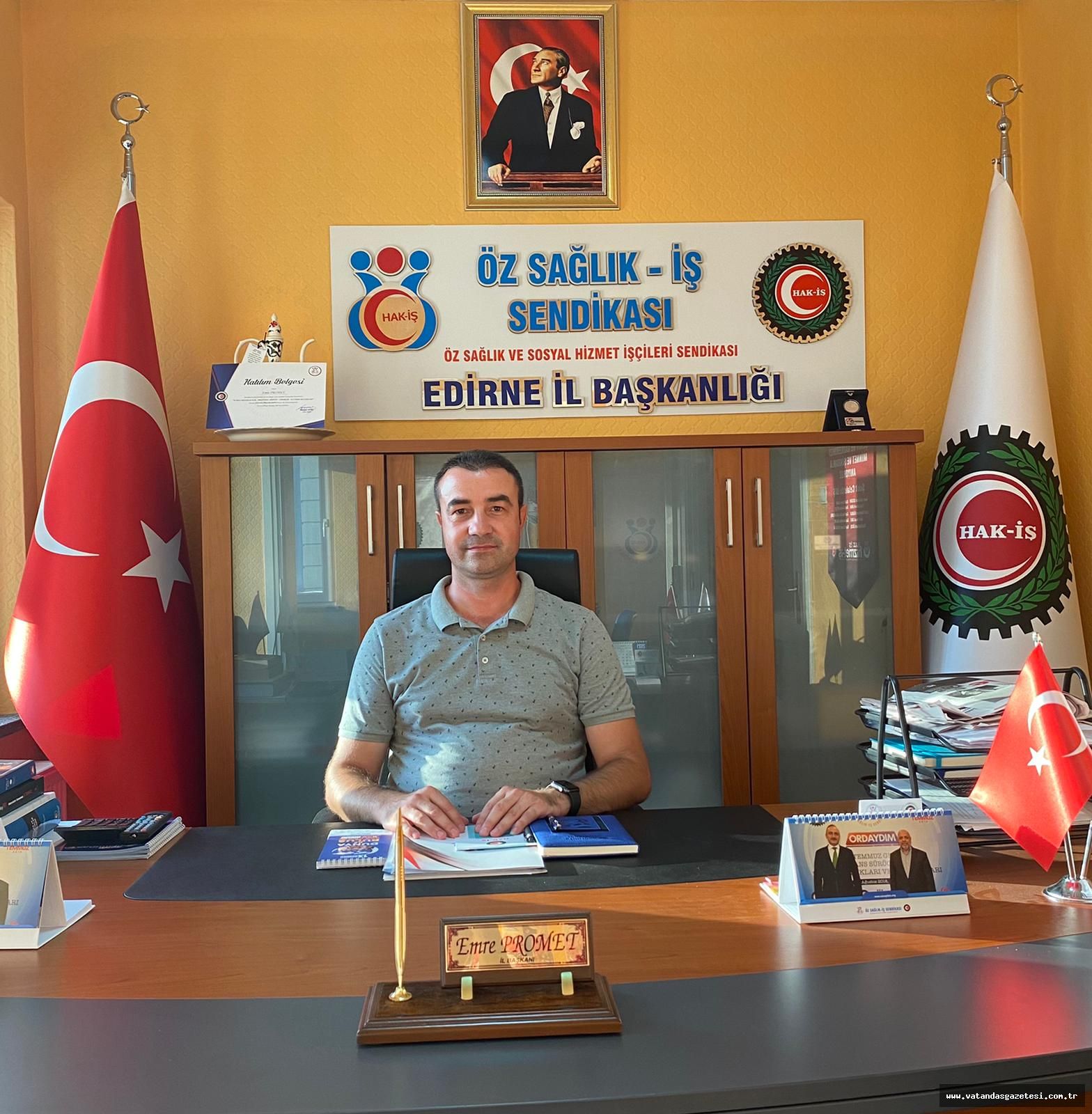 Hak-İş/Öz Sağlık İş Sendikası Edirne Şube Başkanı Emre Promet, imzalanan 2021 Yılı Kamu Toplu İş Sözleşmeleri Çerçeve Protokolü ile ilgili açıklamalarda bulundu.