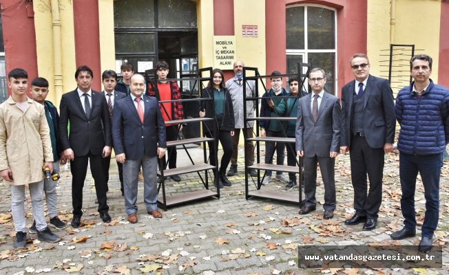 İl Millî Eğitim Müdürü Yardımcısı Müzekkâ Bayrak ve beraberinde şube müdürleri kütüphane malzemelerinin imal edildiği atölyeleri ziyaret edip incelemelerde bulunarak öğretmen ve öğrencilerimize çalışmalarında kolaylıklar dilediler.