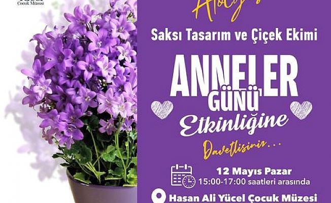12 Mayıs Pazar günü, Saat: 15:00'da Hasan Ali Yücel Çocuk Müzesi'nde başlayacak “Saksı Tasarım ve Çiçek Ekimi Atölyesi" etkinliği saat: 17:00'a kadar sürecek.
