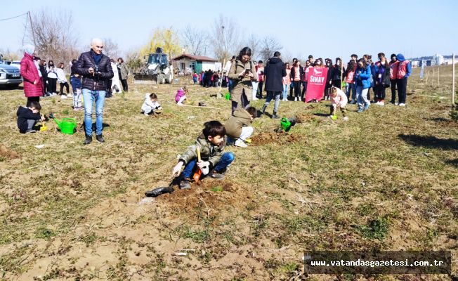 Etkinliğe katılan minik öğrenciler kendilerine verilen minik küreklerle fidanları ekmeye başladı. Büyük bir gayretle fidanları toprakla buluşturan minik eller, fidanları can suyunu da vererek geleceklerine temiz bir doğa için ilk adımlarını da atmış oldular.