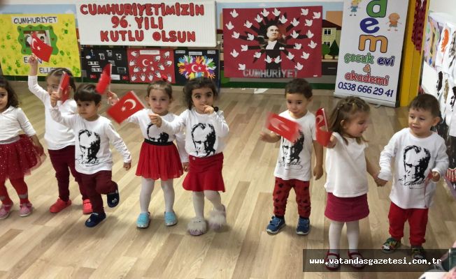 2019-2020 Eğitim-Öğretim Yılı Özel Badem Çocukevi Akademi Kreş ve Gündüz Bakımevi miniklerinin 29 Ekim Cumhuriyet Bayramı kutlama programı okulun salonunda gerçekleştirildi. Cumhuriyet Bayramı özel gösterisi Saygı Duruşunda bulunulması ve İstiklal Marşı'nın okunmasıyla başladı. Ardından ellerinde 'Emanetin emin ellerde', 'Adım adım izindeyiz', 'Birlikten Cumhuriyet doğar' yazılı dövizlerle sahneye çıkarak gösteri sergileyen minikler, izleyenlerin duygu dolu anlar yaşamasına neden oldu.