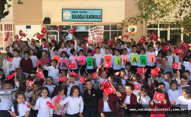 Edirne'nin Süloğlu İlçesi’ndeki ilkokul öğrencileri Barış Pınarı Harekatı’nda görev yapan Mehmetçiklere moral vermek amacıyla mektup yazma etkinliği başlattı. Etkinliğe katılan 100 öğrenci harekatta görev yapan Mehmetçiklere mektup yazdı. Duygu dolu mektupların toplanmasının ardından okul önünde bir araya gelen öğrenciler, 'Süloğlu İlkokulu Mehmetçiğin yanında' yazılı döviz ile kartonlardan 'Barış Pınarı' yazısı oluşturdu. Öğrenciler, İlçe Milli Eğitim Müdürü Bünyamin Yılmaz, Okul Müdürü Özalp Aktaç, Öğretmen Özlem Dömekeli ile birlikte Süloğlu Garnizon Komutanlığı'na giderek; mektupları Mehmetçiğe ulaştırmak üzere Süloğlu Garnizon Komutanı Albay Aytuğ Yörüyüş’e teslim etti.