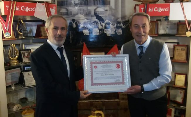 Edirne İl Müftüsü Alettin Bozkurt, Hafızlık Merasiminde maddi ve manevi desteklerini esirgemeyen Edirne'yi Tanıtma ve Tava Ciğer Koruma Derneği Başkanı ve kentin turizm elçisi olarak tanınan Bahri Dinar’ı ziyaret ederek, bir teşekkür beratını takdim etti.