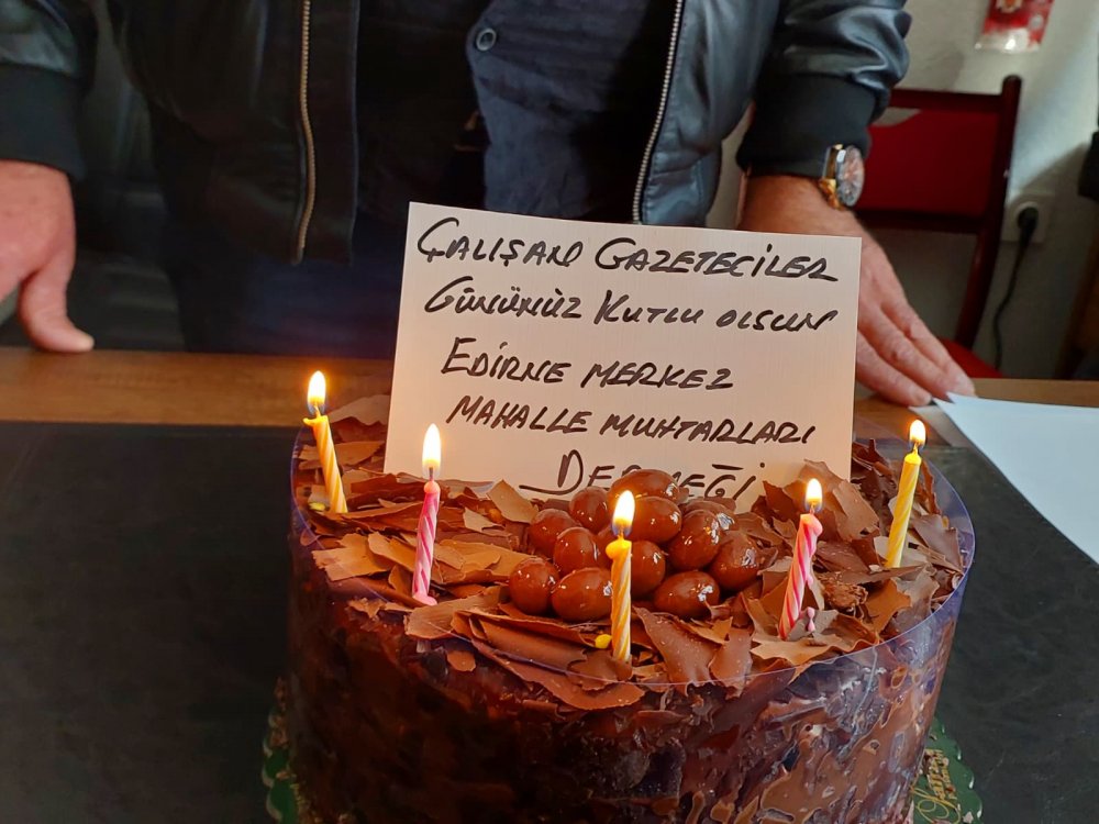 Edirne Merkez Mahalle Muhtarları Derneği Başkanı Aykut Yaman ve mahalle muhtarları, gazetecilerin gününü pasta keserek kutladı. Programda konuşan Dernek Başkan Aykut Yaman, basın mensuplarının her koşulda kamuoyunu bilgilendirmek için büyük bir özveriyle çalıştığını vurguladı.