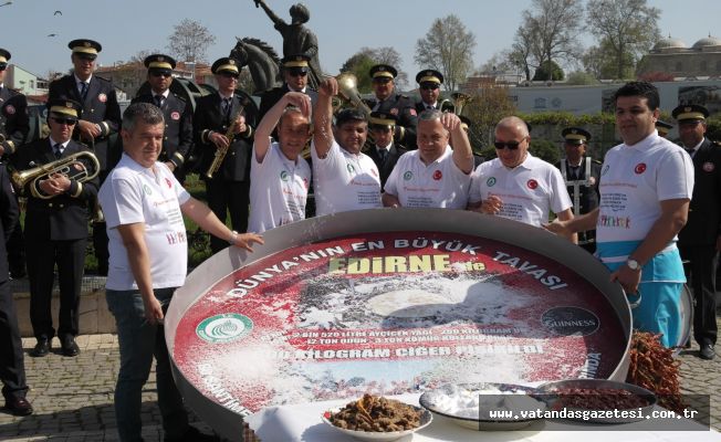 9’uncu Ciğer ve Bando Festivali, Edirne Belediyesi tarafından bu yıl 26-28 Nisan tarihleri arasında düzenlenecek. Edirneli Ciğer Ustaları dün Selimiye Meydanı’nda bir araya gelerek basın açıklaması düzenledi. Guinness Rekorlar Kitabı’na giren dev ciğer tavasının minyatürüne tuz döken ciğer ustaları, “Biz ciğerci arkadaşlarla tuz meselesinde takılı kaldık. Biz bakıyoruz ama tuzu bir türlü ayarlayamıyoruz. Nusret Bey Kardeşim eğer bizi duyuyorsan, seni tüm ustalar olarak Bando Ciğer festivale davet ediyoruz.” dedi.