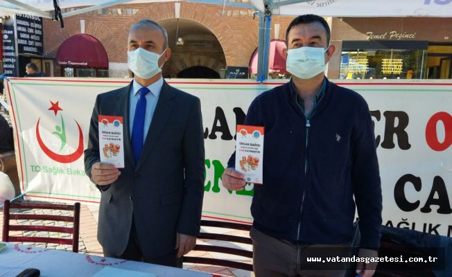 Saraçlar Caddesinde kurulan Organ Bağışı Standında İl Sağlık Müdürlüğü görevlileri halkı Organ bağışı konusunda ilgilendiriyor. Organ Bağışı’nın başka hayatlara can katmak olduğunu ifade eden yetkililer, organ bağışının ne olduğu, bağışın nereye yapılacağı, hangi organların bağışta bulunabileceği gibi bilgileri verdiler.