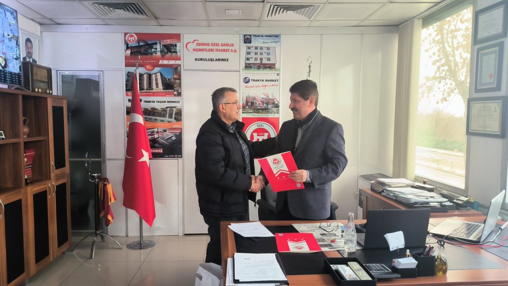 Protokole, Edirne Özel Sağlık Hizmetleri A.Ş. Yönetim Kurulu Başkanı Orhan Yazgan ile Edirne Demirciler ve Kaynakçılar Esnaf ve Sanatkârlar Odası Başkanı Birol Özbaş imza attı.