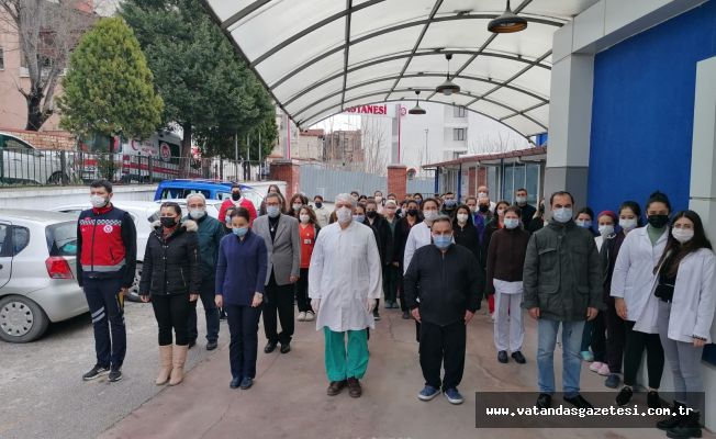 Pandeminin Türkiye’de başlamasının yıldönümünde, salgın boyunca pek çok fedakarlıkta bulunan sağlık çalışanları unutulmadı. Sağlık çalışanları, yaşamını yitiren meslektaşlarını ülkenin dört bir yanında hastane önlerinde andı. Bu kapsamda Edirne’nin başarılı sağlık kuruluşlarından Özel Trakya Hastanesi’nde görev yapan sağlık çalışanları da, hastane bahçesinde 1 dakikalık saygı duruşunda bulunarak; ‘Kahramanları’ unutmadı.