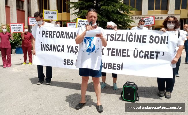 “Salgın sürecinde sağlık alanında yaşanan pek çok eksikliğe rağmen başarı hikayeleri anlatan Bakanlık gerçekleri söylememektedir. İktidarın ve Bakanlığın uygulamalarına ve çökmüş sağlık sistemine rağmen sağlık emekçileri hizmetlerini fedakarca yürütmüşlerdir ancak sağlık sistemi ve çalışma rejimi sağlık emekçilerini sağlığından etmektedir. Çalışma süreleri ve iş yükünün artması, angarya çalışma, ücretlerin azlığı sorunları salgın süresince artarak devam etmektedir. Salgından önce de ek ödemeler sorun kaynağıydı. Performans sisteminin kendisinden adalet çıkmayacağını yıllardır zaten dile getiriyoruz ve sonuçlarını yaşıyoruz. Ek ödeme/döner sermaye ödemeleri emekliliğe yansıtılmazken son zamanlarda artık ‘gelirler azaldı’ denilerek döner sermaye performans ödentileri ya komik rakamlarla (8 TL, 50 TL, 70 TL gibi) ödenmekte ya da hiç ödenmemekteydi. Üniversite hastanelerinin büyük bir bölümünde döner sermaye ödemeleri sıfırlanmışken, nöbet ücretleri ödenmezken, eğitim ve araştırma hastanelerinde ise döner sermaye ödentilerinde büyük oranda düşüşler yaşanmaktaydı.”