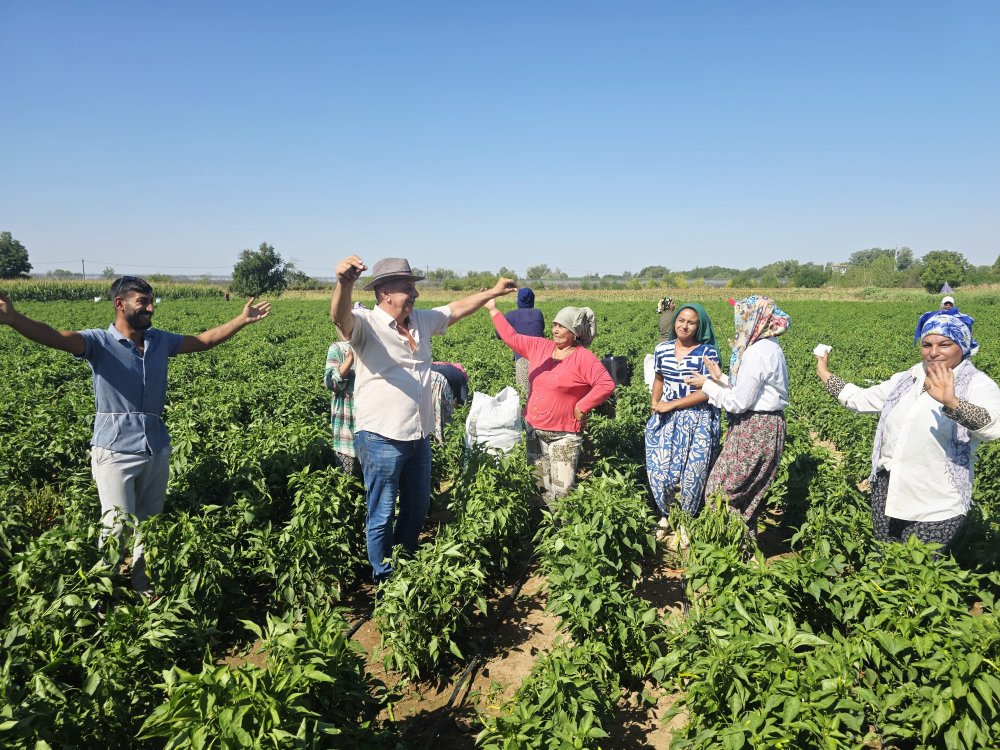 Belediye Başkanı Gencan Akın, "Bölge çiftçisi tarafından yıllardır özenle yetiştirilen Karaağaç bibernin bugün hasadına katıldık. Edirne’nin tarladan sofraya uzanan yerli üretim gücünün simgelerinden biri olmayı sürdürüyor. Bizle belediye olarak çiftçimizin bugüne kadar yanında olmaya gayret gösterdik. Bundan sonraki süreçte de çiftçimizin her zaman yanında olmayı sürdüreceğiz" diye konuştu.