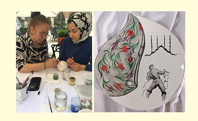 Katılımcılar, önceden hazırlanmış desenlerle kupa, saksı ve kaşıklıkları boyadılar. Boyama işlemi tamamlanan eserler sırlanarak 915 derecede fırınlanıyor ve sonrasında katılımcılara teslim edilerek etkinlik son buldu.