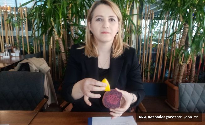 Has Ege Unlu Mamülleri Sahibi Nuray Yılmaz Geldi, geçtiğimiz ay üretmeye başladıkları mor ve zerdeçallı ekmek hakkında bilgiler vermek için basın toplantısı düzenledi. Üretilen ekmeklerin birçok faydası olduğunu belirten Geldi, sahte mor ekmek ile doğal mor ekmeği ayırt etmek içinse limon kullanılması gerektiğini söyledi.