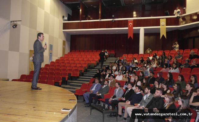 Trakya Üniversitesi İktisadi Gelişme ve Uluslararası İktisat Anabilim Dalı Başkanı Prof. Dr. Ayhan Aytaç, “Arkadaşlarımız aslında Kariyer Festivali başlığı adı altında bir dikkat çekme operasyonu yapıyor. Bazı şeyleri sizlere odaklamak istiyorlar. Bu odaklanması gereken en önemli unsurlardan bir tanesi de, üniversite hayatının belli bir dönem sonunda biteceği ve kariyer döneminin başlayacağıdır. Doğal olarak burada geçirdiğiniz süre sizin için bilimsel bilgi birikimi yönünde ve günümüz kariyer hayatı ile rekabet ortamına hazır olmanız gerektiğini ifade ediyor. Bugün davetli olarak gelecek ve konuşacak olan tüm arkadaşlarımız sizlerin oturduğu sıralardan ilerleyip belli bir seviyeye geldiler.” dedi.