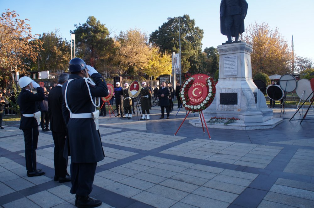 Türkiye Cumhuriyeti’nin kurucusu Ulu Önder Gazi Mustafa Kemal Atatürk’ün vefatının 86. yıl dönümü, Edirne’de düzenlenen bir dizi etkinlikle anıldı. Anma programı, Edirne Valisi Yunus Sezer, Edirne Belediye Başkanı Filiz Gencan Akın, 54’üncü Mekanize Piyade Tugay Komutanı Tuğgeneral Yüksel Kolcu, CHP Edirne Milletvekili Ahmet Baran Yazgan ile siyasi parti ve sivil toplum kuruluşlarının temsilcilerinin katılımıyla Atatürk Anıtı’nda başladı. Saygı duruşu ve çelenk sunumu ile başlayan törende duygusal anlar yaşandı.