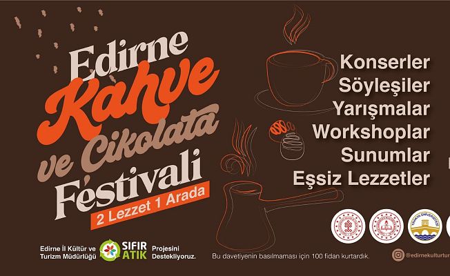 Edirne Kültür ve Turizm İl Müdürü Kemal Soytürk, sosyal medya hesabından yayınladığı davetiye ile 27/28 Kasım tarihleri arasında ilk kez düzenlenecek olan Edirne Çikolata-Kahve festivaline tüm halkı davet etti.