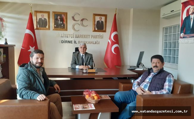 Özel Trakya Hastanesi Yönetim Kurulu Başkanı Orhan Yazgan ile Gazetemiz Yazı İşleri Müdürü Emre Sedef, geçtiğimiz ay MHP Edirne İl Başkanlığına atanan Zakir Tercan’ı makamında ziyaret etti. Özel Trakya Hastanesi Yönetim Kurulu Başkanı Orhan Yazgan, Tercan’a yeni görevinde başarılar dileyerek Edirne’ye yararlı hizmetler edileceği noktasında inancının tam olduğunu dile getirdi. İyi dilekleri için Yazgan’a teşekkür eden Tercan, ziyaretten duyduğu memnuniyeti de dile getirdi.
