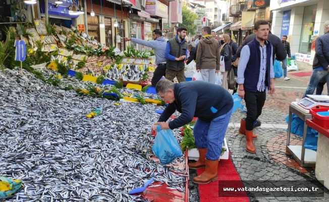 Kentte balık pazarında tezgahlar kilosu 10 Türk lirasına düşen hamsi ile doldu taştı. Kilosu 40-50 lira civarında satılan Hamsi, yaşanan bollukal birlikte önce 20 ardından da 10 TL’ye düştü. 10 Liradan tezgahlarda satışa sunulan Hamsi’den hem esnaf hem de vatandaşlar memnun.