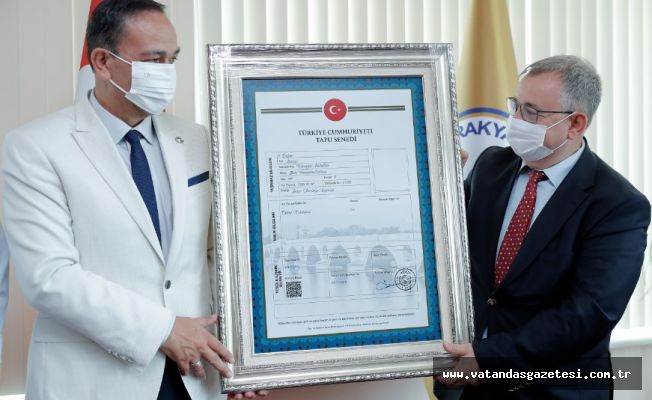 Meriç Köprüsü’nün temsili tapusunun yer aldığı tablo hediye edildi
