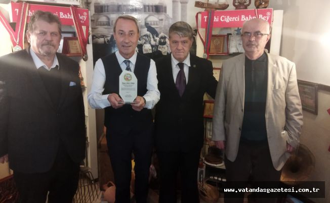 Ciğerci Bahri Dinar’ın işyerinde düzenlenen törende konuşan Türkiye Yerel Basın Birliği Edirne Şubesi Başkanı Erdoğan Demir, kentin tanıtımı ve Edirne Ciğerinin tanıtımına büyük katkılarda bulunan Bahri Dinar’a plaket vermek için toplanıklarını hatırlatarak, “Gerçekten Edirne’nin ulusal ve uluslar arası tanıtımda yaptığı başarılı çalışmalarla, Edirne’nin adının öne çıkması Edirne tava ciğerinin öne çıkmasında Bahri Bey’in çok büyük katkısı var. Biz kendisini tebrik ediyoruz. Yönetim Kurulum adına ve tüm Edirneliler adına bu plaketi kendisine takdim ediyorum. Edirne için çok büyük emekleriniz var” şeklinde konuştu.