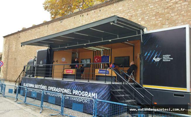 Edirne Kervansaray Oteli yanındaki alanda tanıtıma başlayan TIR’da USOP kapsamında desteklenen projeler ile bölgedeki ulaştırma projelerinin tanıtımı gerçekleştirildi.