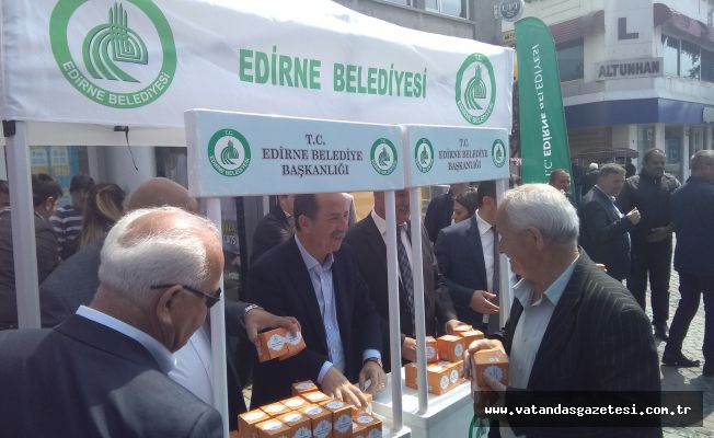 Edirne Belediyesi tarafından Miraç Kandili dolayısıyla Saraçlar Caddesi’nde vatandaşlara kandil simidi dağıtıldı. Edirne Belediye Başkanı Recep Gürkan, CHP Edirne İl Başkanı Fevzi Pekcanlı, İYİ Parti Edirne İl Başkanı Ekrem Demir kandil simitlerini birlikte dağıttılar.