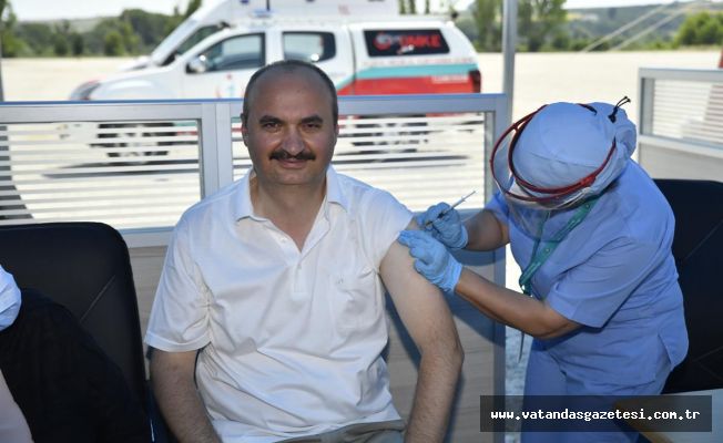 Vali Canalp, kapıkule Sınır Kapısında aşılama merkezini ziyaretinde 3. doz aşısını da yaptırdı.