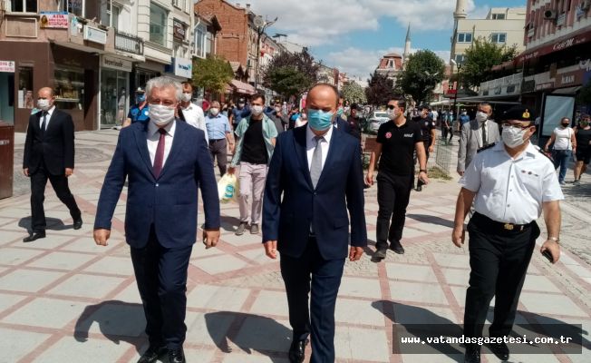 İçişleri Bakanlığı tarafından yayımlanan Covid-19 Tedbirleri konulu ek göstergesi doğrultusunda; dün tüm Türkiye’de olduğu gibi Edirne’de de korona virüsle mücadelede uyulması gereken tedbirlerle ilgili denetim yapıldı. Edirne Valisi Ekrem Canalp'in bizzat katıldığı denetimlerde vatandaşların ve esnafların maskelerinin takılı olması ve kurallara uyması dikkat çekti. Vali Canalp, vatandaşların ve esnafların kurallara uymasının kendisini çok mutlu ettiğini ifade ederek tüm Edirnelilere teşekkür etti.