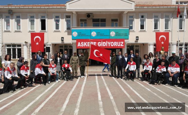 Saygı duruşunda bulunulması ve İstiklal Marşı'nın okunmasının ardından Günün anlam ve önemini belirten konuşmayı yapan Faika Erkurt Özel Eğitim Okulu Müdürü Emine Esra Madalı, “Kutsal değerlerimizin başında gelen vatan sevgisi, vatana olan bağlılığımız asla vazgeçemeyeceğimiz olgulardır. Millet olarak günlerce, hatta haftalarca aç ve susuz kalabilir. Bir takım sıkıntılara maruz da kalabiliriz ama vatansız kalamayız. Anayasamıza göre vatan hizmeti, her Türk’ün hakkı ve ödevidir. Askerlik görevi Türk Ulusu için bir onur meselesidir. Kültürümüzde 3 yerde kına yakılır. Birincisi kurbanlık koça yakılır ki, Allah’a kurban olsun diye. İkincisi gelin olacak kıza yakılır ki, çocuklarına kurban olsun diye. Üçüncüsü de askere giden erkeklere yakılır ki, gerekirse vatanına kurban olsun diye. Askerlik, toplumumuzda önemli ve kutsal bir görev olarak görülmektedir. Hiçbir engeli tanımayan öğrencilerimiz, kısa da olsa kutsal askerlik görevini yapmak için gösterdikleri istek ve heyecan da onların toplumsal yaşamda yer alma mücadelelerinin önemli bir adımıdır. Onların yaşama sımsıkı sarılmaları, içlerindeki umudu hiç kaybetmemeleri ve hayata tutunma adına gösterdikleri azim ve özverileri konusunda her zaman yanlarında olduk.” dedi.