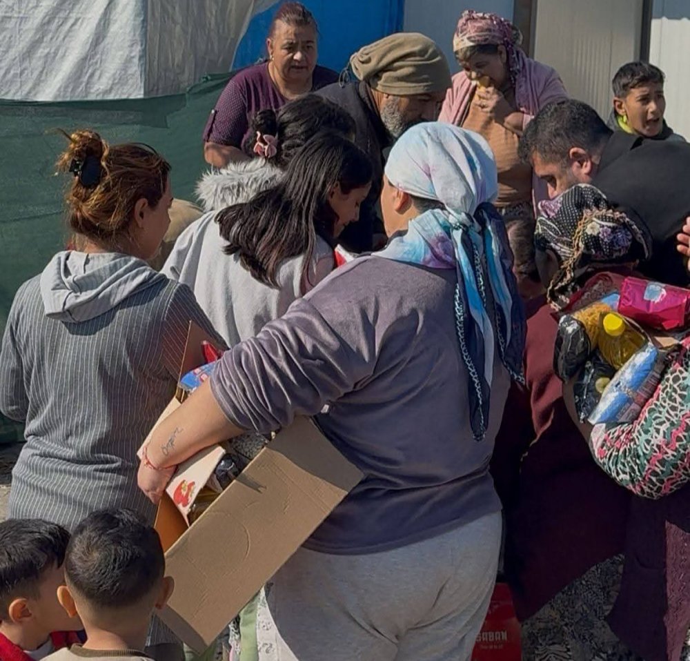 Ramazan yardımları kapsamında temel gıda malzemelerinden oluşan erzak paketleri ihtiyaç sahiplerine tek tek teslim edilirken, konteyner kentte yaşayan vatandaşlarla sohbet edilerek talep ve ihtiyaçlar da dinlendi. Yardım dağıtımı sırasında birlik ve beraberlik mesajı verildi.
