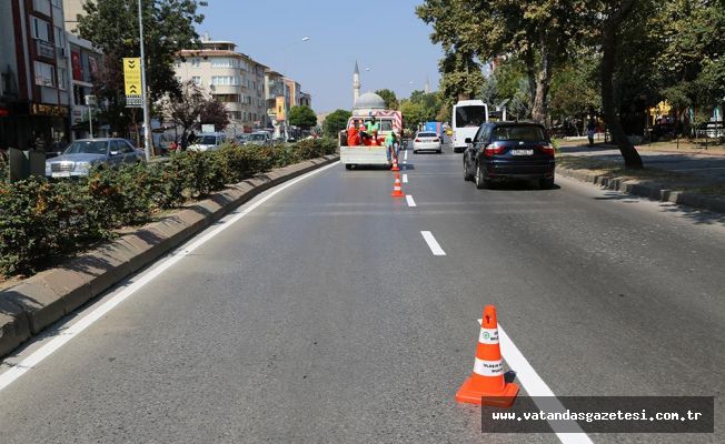 Edirne Belediyesi Ulaşım Hizmetleri Müdürlüğü; yeni eğitim ve öğretim yılı öncesinde trafik güvenliğini sağlamak için yollarda çizgi çalışması yaptı. Ekipler, çalışmalarını Tıp Fakültesi Kavşağı ile Kapıkule Çevre Yolu Bağlantı yolu arasındaki 13,2 kilometrelik alan ile Güney Çevre Yolu’ndaki 3,84 kilometrelik alanda gerçekleştirdi. Ekipler, yaklaşık 17 kilometrelik bir alanda çizgi çalışması yaparak; sürücülerin trafikte daha güvenli bir şekilde ilerleyebilmeleri için gerekli tedbirleri aldı. Çalışmalarda 6 bin 300 kilogram beyaz boya ile 2 bin 100 kilogram gece çizginin parlamasını sağlayan cam küreciği kullanıldı.
