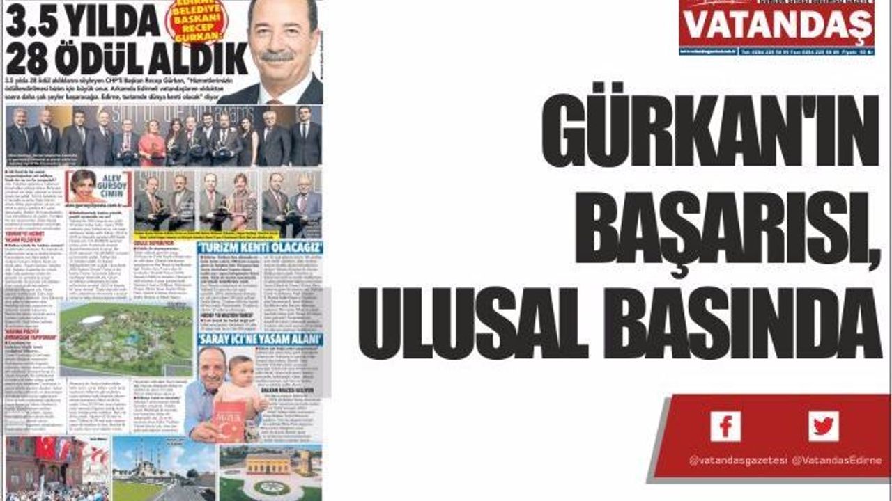 Gazeteci-Yazar Alev Gürsoy Cimin'in röportaj yaptığı Edirne Belediye Başkanı Recep Gürkan, Posta Gazetesi'nde tam sayfa çıkan haberiyle Türkiye'nin gündemine oturdu. Gürkan'ın, “3,5 yılda 28 proje yaptık” sözleri başlığa çekilirken Edirne'nin turizmde dünya kenti olacağını da vurguladığı görüldü.