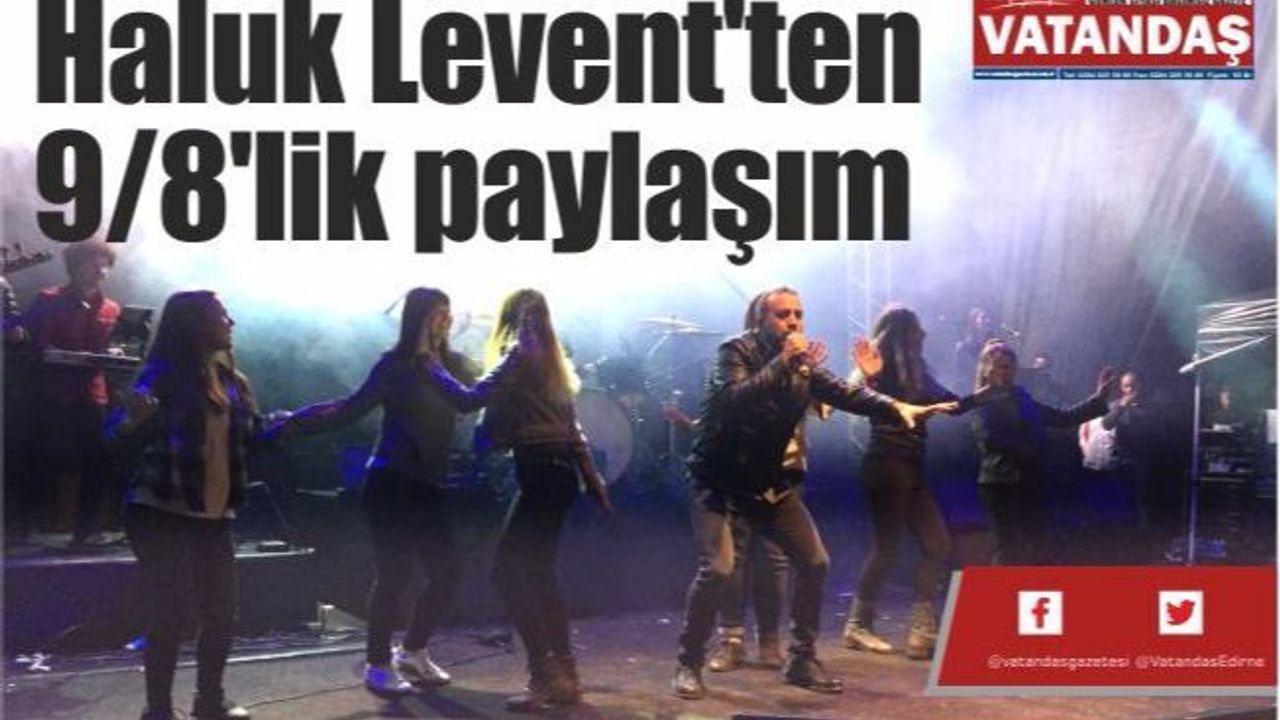 Edirne 'de düzenlenen bir etkinlikte ünlü sanatçı Haluk Levent konser verdi. Uzun yıllar Edirne'de yaşayan ve sahne alan ünlü sanatçı, sahnede Edirne anılarını anlattı. Kendisini dinlemeye gelenleri adeta coşturan Haluk Levent, bir ara seyircilerin arasına inerek şarkılarını orada söyledi. 'Kızılcıklar oldu mu?' şarkısında ise oynamak isteyen seyircileri sahneye davet etti. Sahneye çıkan Edirneli kızlar adeta döktürürken, ünlü sanatçı resmi twitter hesabından anın fotoğrafını 'Edirne kızları dokuz/sekiz'i duyar da durur mu' notuyla paylaştı. Ünlü sanatçı Edirne'nin kendisi için çok özel olduğunu söylerken, konserini İzmir Marşı'yla sonlandırdı.
