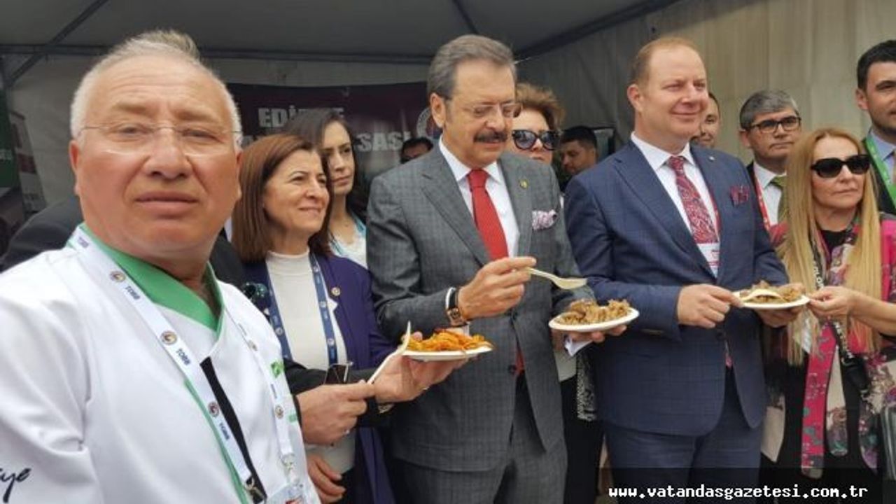 Edirne Ticaret Borsası Yönetim Kurulu Başkanı Özay Öztürk ve Yönetim Kurulu Üyeleri, Türkiye Odalar ve Borsalar Birliği Başkanı Rifat Hisarcıklıoğlu’na, Edirne’nin Meşhur Tava Ciğerini ikram ettiler. AK Parti Edirne Milletvekili Fatma Aksal’ın da katıldığı etkinlikte; Ciğerci Niyazi Usta tarafından yapılan tava ciğerin tadına bakan Hisarcıklıoğlu, tava ciğeri çok beğendiğini dile getirdi.