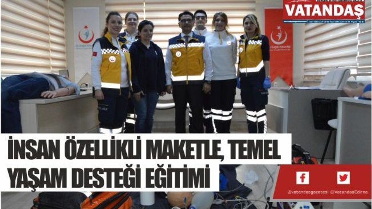 Eğitmen Merve Aydınöz, üzerinde uygulama yapılan maketin birebir insan vücudunu yansıttığını belirterek,  "Şuanda verilen eğitim, personelin alması gereken zorunlu bir eğitim. 5 gündür bu eğitimi gerçekleştiriyoruz. Bu eğitimde arkadaşlarımızın yapması gereken basamaklar var. Bunlardan ilki, girdikleri gibi kendilerini tanıtarak hasta ve yakınından onay almalarıydı. Sonrasında olgunun ne olduğunun tespit edilmesi gerekiyordu. Tanıyı doğru koyabilmelerini bekliyorduk, bunu yapabildiler. Kalp masajı ve oksijenizasyon uygulamaları ve tüm hava yolu uygulamalarını yaptılar. Yapılan basının doğruluğunu, derinliğini, dakikada ne kadar bası yapılması gerektiğini ölçen bir alettir. Uygunsuz yapıldığı zaman da uyarı veren bir alet. Maketimiz bire bir insan vücudunun aynısı olarak yapılmıştır. Damar yolu açılabiliyor, soluk borusu bir insan vücudunda nasılsa makette de öyle, ciğerleri inip şişmektedir.  Tamamen insan anatomisini yansıtıyor. Bütün uygulamaları gerçekleştirebiliyoruz, özellikli bir maket olduğu için. Bölgemizde sadece Edirne'de var.” dedi.