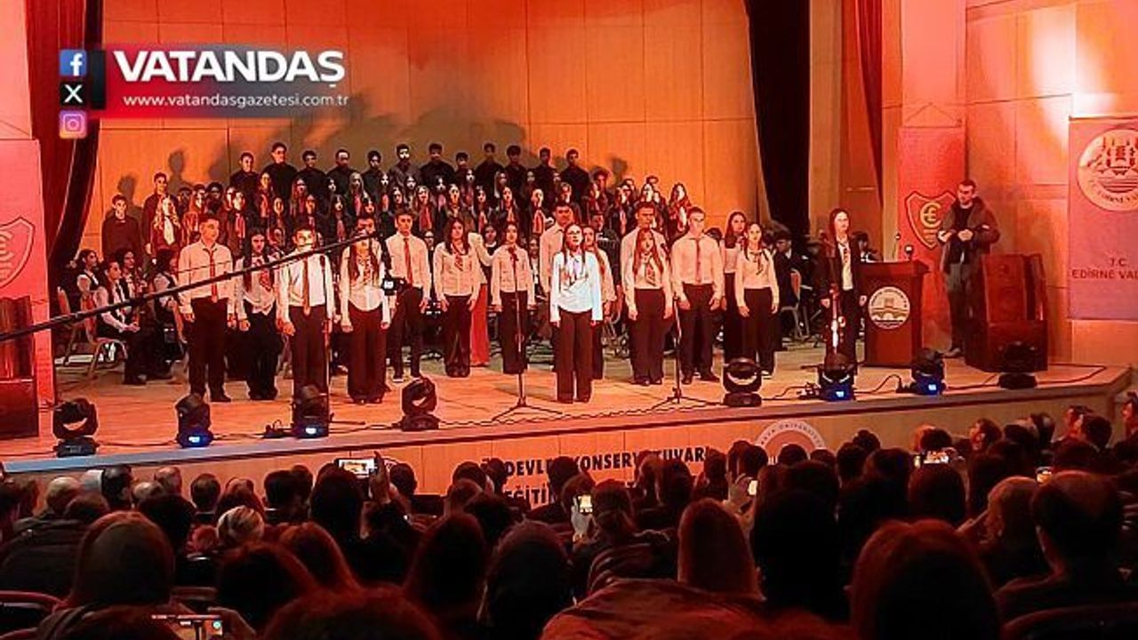 Akabinde Edirne Lisesi'nin 105 öğrenci ve öğretmenin katkısıyla hazırlanan “Korkma! Gençliğin Ruhu Burada” adlı oratoryo sahnelendi. Program, katılımcıların alkışları eşliğinde sona erdi.