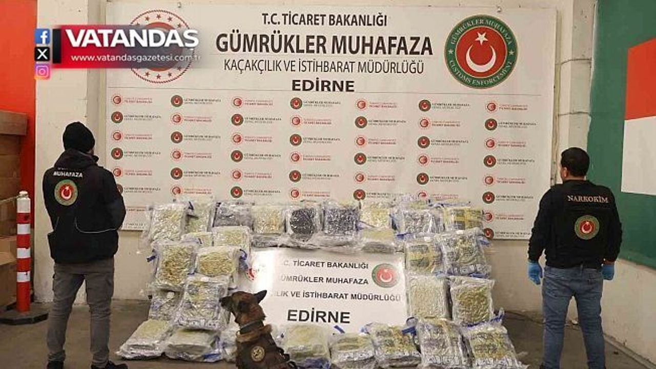 Edirne’nin de aralarında bulunduğu 3 ayrı gümrük kapısında uyuşturucuya yönelik operasyonlar gerçekleşti. Kapıkule Gümrük Kapısında 886 kilo esrar yakalanırken, Mersin ve Gürbulak’ta yüzbinlerce sentetik hap ile 200 kilo metamfetamin ele geçirildi.