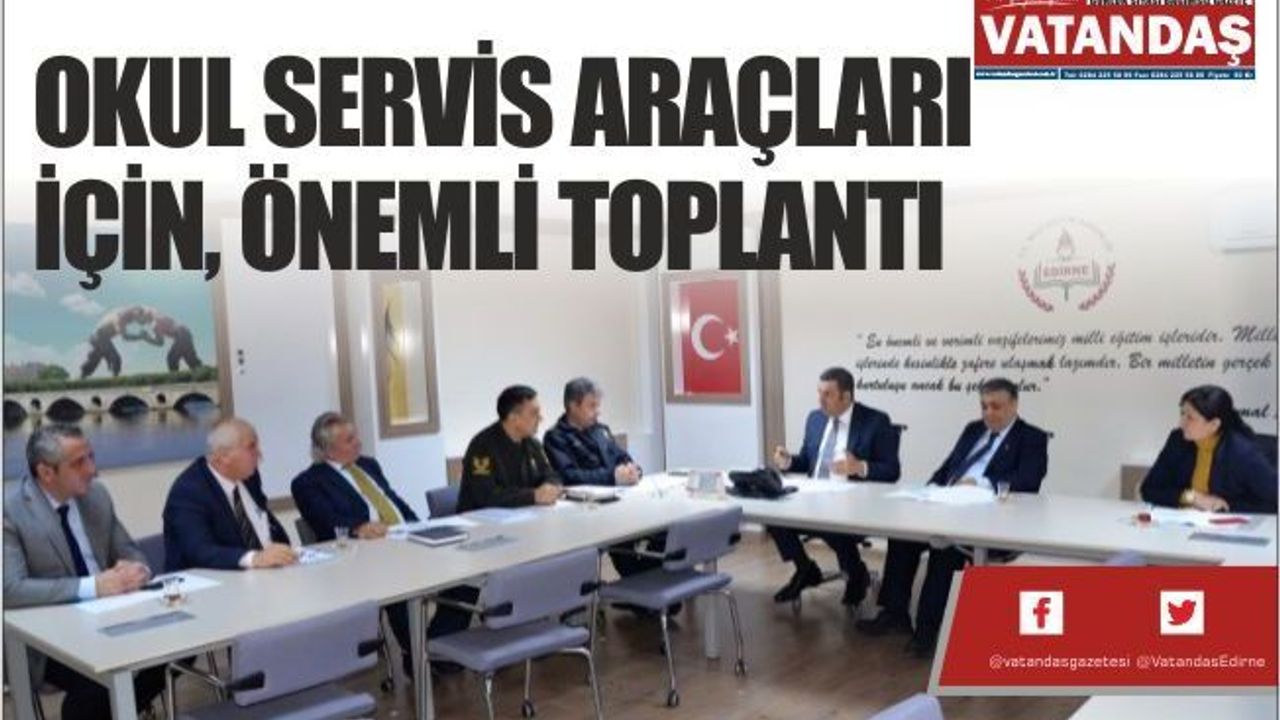 Vali Yardımcısı Sayın Dr. Yusuf Güler başkanlığında 04 Ocak 2018 Perşembe günü Arda Toplantı Salonu'nda gerçekleştirilen toplantıya İl Millî Eğitim Müdürlüğü, İl Emniyet Müdürlüğü, İl Jandarma Komutanlığı, Edirne Karayolları Bölge Müdürlüğü, Edirne Şoförler ve Otomobilciler Esnaf Odası ile Edirne Okul Servis Araçları Odası Başkanlığından temsilciler katıldı.
