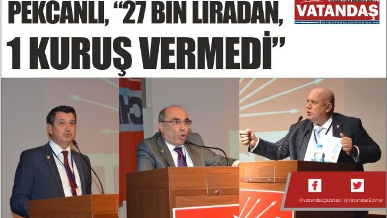 CHP Edirne İl Başkanı Fevzi Pekcanlı, 27 bin lira maaş aldığı halde 1 kuruş vermediğini söyleyerek Erdin Bircan'a yüklenerek, “Sayın Vekilim gazetede yapılan bir haberin broşürünü çıkardı. Bu haberin yayınlandığı dönemden önce benim birçok açıklamam olmuştur ama o gazetede yayınlanmamıştır. Böyle bir gazeteciye ben 'Al o haberi yap' desem de yapmaz zaten. 27 bin lira maaş alırken CHP'ye bir kuruş vermediğinizi bütün Edirne biliyor Sayın Erdin vekilim. Belediyede asgari ücretle çalışan personel 100 lira bağış yaptı, yinede yaptı. Siz emekli maaşınızla beraber 27 bin lira maaş aldınız bir kuruş vermediniz.” dedi.