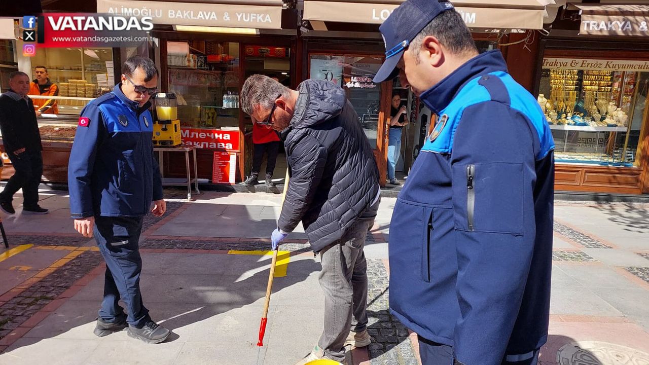 Edirne Belediyesi Zabıta ekipleri, şehir merkezinde yaya yoğunluğunun fazla olduğu bölgelerde sarı çizgi uygulamasını yeniden hayata geçirdi. Özellikle Saraçlar Caddesi, Balık Pazarı Caddesi ve Çilingirler Caddesi’nde yürütülen çalışmalar kapsamında, işletmelerin kaldırım ve yol üzerindeki kullanım alanları cephe boyuna göre yeniden belirleniyor.