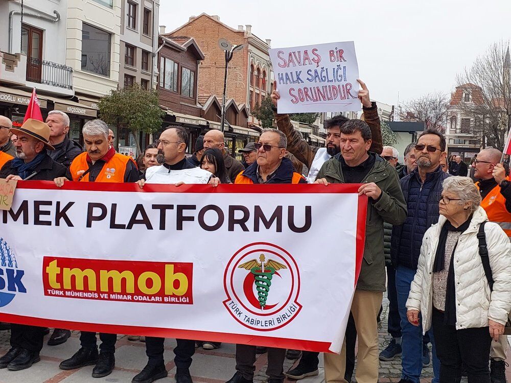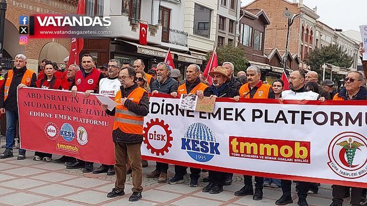 Edirne Emek Platformu, savaş ve işgal politikalarını reddettiklerini belirterek barış çağrısında bulundu. Açıklama, katılımcıların attığı “Katil ABD Ortadoğu’dan defol” sloganlarının ardından sona erdi.