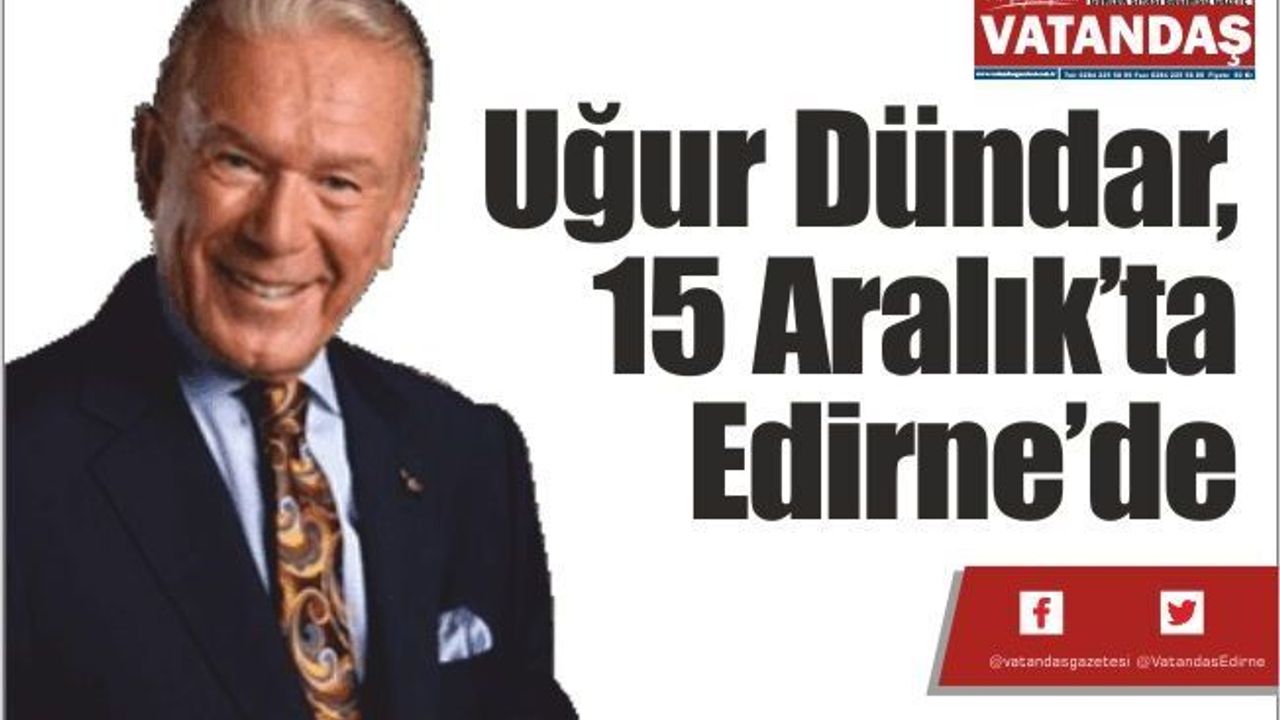 Edirne Belediyesinin davetlisi olarak 15 Aralık’ta Edirne’ye gelecek olan ünlü Gazeteci-Yazar Uğur Dündar Halk Arenası programı ile Edirnelilerle buluşacak. Halk TV kanalında yayınlanan Halk Arenası programına Edirne Belediye Başkanı Recep Gürkan konuk olacak. Programda ülke ve Edirne gündemi değerlendirilecek.